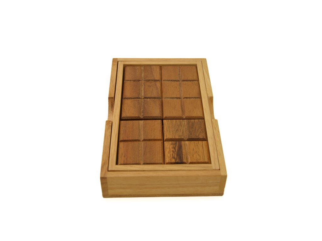 "Čokoláda" sa rozloží na 7 rôznych dielov v dvoch vrstvách. Cieľom je vložiť ich späť do rámu. Vyzerá to celkom jednoducho, ale nie je!