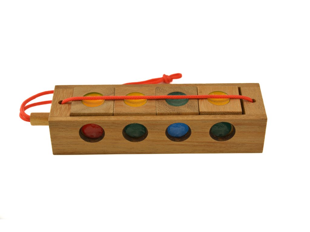 Balenie obsahujúce 4 kocky so 4 rôznymi farbami na 6 stranách. Cieľom je usporiadať ich v drevenom puzdre tak, aby boli po dĺžke 4 rôzne farby. Tento hlavolam bol patentovaný v Detroite v roku 1900. Štatistická analýza tohto hlavolamu ukazuje, že ak nastavíte, aby bola jedna strana hlavolamu správna, máte šancu 1 k 14 000, že ostatné 3 strany budú správne tiež!