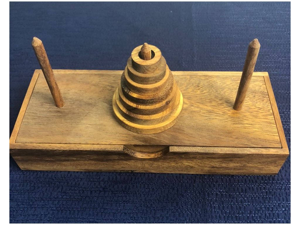 Dokážete presunúť vežu na jeden z ďalších dvoch kolíkov bez toho, aby ste čo i len raz umiestnili väčší prsteň na menší?